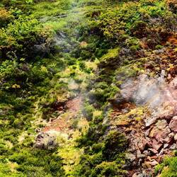 Falls man vergessen haben sollte, dass man sich hier die ganze Zeit am Rande oder in einem Vulkankrater bewegt - der Furnas do Enxofre erinnert einen daran, dass es ein ganzes Stück unterhalb einemLes mer