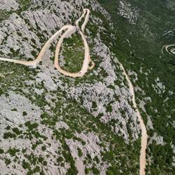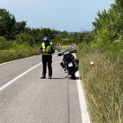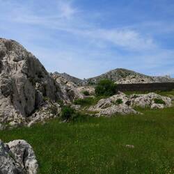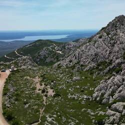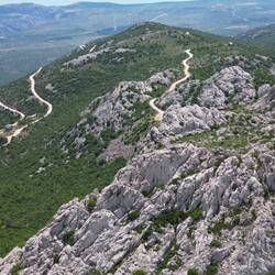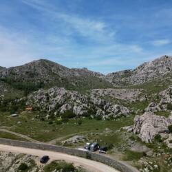 Auf der Weiterfahrt prägte die Silhouette des Velebit-Gebirges das Bild. Kurz bevor es an den Anstieg zum Mali Alan ging, wurde noch einmal die Autobahn überquert und dann hörte es auch schon auf mit dem Asphalt.