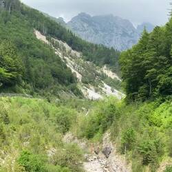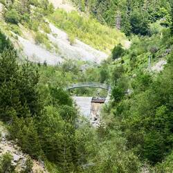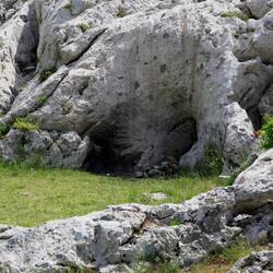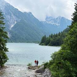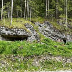 Weiter ging es dann über einen kurzen Abstecher nach Italien. Die Grenze - mal wieder nicht besetzt. Die Häuser - wie im Hinterland Kroatiens fast alle verlassen (warum - mitten in einer Urlaubsregion). Aber es gab einen wunderschön gelegenen Bergsee, an dem wir die letzte Pause einlegten. Hier sahen wir wie zuvor schon Befestigungsanlagen aus dem Ersten Weltkrieg, hier Bunkeranlagen, die in den Fels gehauen wurden.