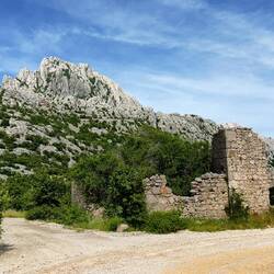 Von dort ging es einmal quer durchs Hinterland in Richtung Velebit-Gebirge. Wich war zwar schon ein paar Mal in Kroatien und bin durch das Hinterland gefahren, aber so habe ich das noch nie erlebt. Ganze Dörfer waren verlassen und dem Verfall preisgegeben. Auf über 35 km ist uns kein Auto entgegengekommen und ledigllich vor einem Café saßen drei Leute.