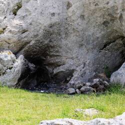 An zwei Stellen gegenüber der Felsformation waren verrußte Stellen zu sehen. Dort haben sich regelmäßig Wildcamper niedergelassen, die dort ein windgeschütztes Eckchen gesucht haben. In Anbetracht dessen, dass am Beginn der Auffahrt vor Bären und Wölfen gewarnt wurde, zumindest speziell...