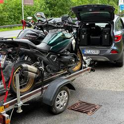 So geht die Motorradtour zuende. Es liegen "nur" noch 1.000 Kilometer mit dem Auto und den Motorrädern auf dem Hänger sowie knapp 60 Kilometer Motorrad von Rüdiger nach Hause vor uns.