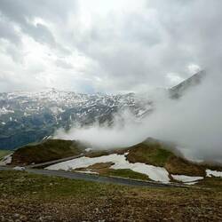 Auf der Franz-Josefs-Höhe kamen dann die ersten Tropfen runter. Auf dem Weg zum Funschertörl unterhalb der Edelweißspitze furhen wir dann voll in die Wolken. Regen und unter 20 Meter Sicht! Kein Vergnügen mit dem Motorrad, wenn man Spitzkehren und Kurven erst unmittelbar vorher sieht.