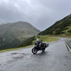 Um kurz nach 9:00 Uhr ging es los. Rauf auf das Hahntennjoch bei leichtem Regen und 5 Grad oben auf dem Pass. Seitdem ist es trocken. Eigentlich wollte ich über das Timmerjoch nach Italien und überEn savoir plus