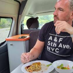 Thomas hat uns heute wieder einen Übernachtungsplatz in freier Natur herausgesucht. Wir stehen direkt an einem Fluss unterhalb einer Brücke.