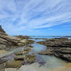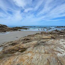 Unser heutiger Übernachtungsplatz ist eine grosse Wiese in Brighton am Otokia Creek. Wir steigen aus und laufen direkt zum Beach hinab. Dort warten Felsen, die eher aussehen, wie Holz. Wir kletternもっと詳しく