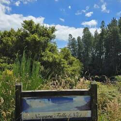 Wir starten wieder mit dem Camper Richtung neues Ziel. Die Reise geht zum New Zealand Niagara river. Der Name verspricht viel, genau so wie die grosse Anzeigetafel am Bestimmungsort. So wirbt diese mit nichts geringerem als einem Bild der originalen Niagarafällen am Mississippi.