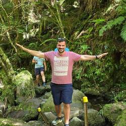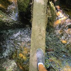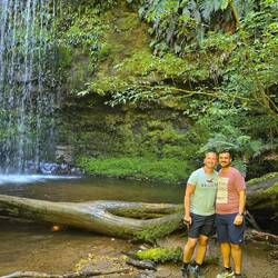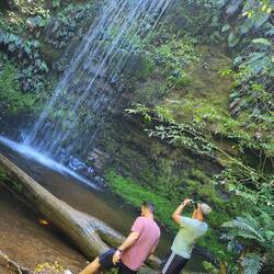 Nach einem kleinen Gleichgewichtsakt über einen schmalen Steg und einer kleinen Kletterpassage erreichen wir das Ziel. Der Wasserfall erscheint in voller Pracht vor uns. Eigentlich nicht grösser als unser erster Wasserfall heute und doch so viel beeindruckender. Ich weiss nicht ob es am zurückgelegten Weg oder der wunderschönen Umgebung liegt, aber dieser Wasserfall gefällt uns definitiv mehr.