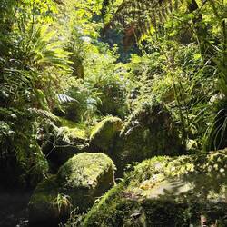 Nach weiteren 10 Minuten Autofahrt sind wir an unserem Ziel, dem Koropuku Wasserfall. Schon etwas ernüchtert von unseren bisherigen Erkundungen brechen wir ohne grosse Vorbereitung auf. Tom sogar in seinen flip-flops. Laut ihm ist das ein Statement, der new Zealand way of live.
