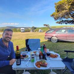 Nach einem kleinen Apero hält es uns nicht mehr in unseren Campingstühlen, und wir wollen zum Strand.