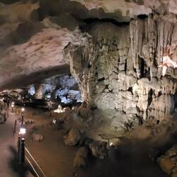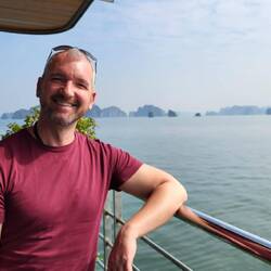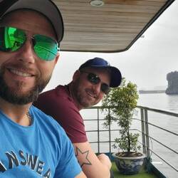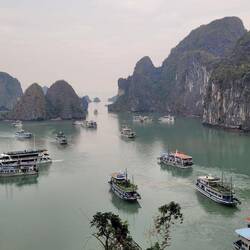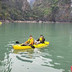 Der frühe Vogel 🐦 fängt den Wurm 🪱. Mühsam quälten wir uns um 06.00 Uhr aus dem Bett, um die Durchfahrt unseres Schiffes durch die Halong-Bay bei Sonnenaufgang mitzuerleben.