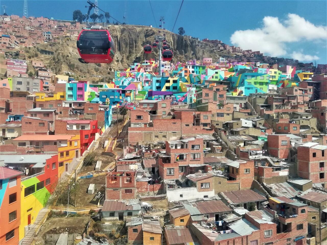La Paz et vraiment énorme ! C’est une cuvette avec le centre historique en bas et les maisons qui monte jusqu’en haut de toutes les collines ! Ils ont fait une dizaine de téléphériques pour rapprocher les quartiers pauvres du centre-ville. C’est vraiment cool car ils ne sont vraiment pas cher (~3Bob et moins si on en combine plusieurs) après ça reste plus cher que le bus, c’est plus rapide mais un peu moins pratique car il y a moins d’arrêt, c’est dur à dire si les gens pauvres les utilisent vraiment. Par contre c’est une super attraction touristique, on peu vraiment faire tout le tour de la ville et parcourir d’énorme distance avec une vue imprenable !