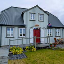 Auf dem Weg zum Westend der Snæfellsnes Halbinsel über einige sehr holprige Schotterpisten haben wir eine Pause im Kaffeehaus Gilbakki mit sehr leckerem Essen und Kuchen gemacht.