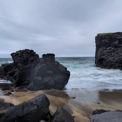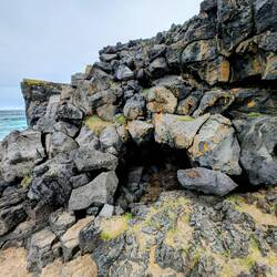 Die Umgebung besteht aus schroffen Lavafeldern, die größtenteils mit Moos, Gräsern und einigen Blumen überwachsen sind.Read more
