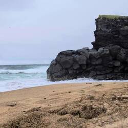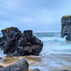 Skarðsvík ist ein kleiner und bezaubernder Strand mit riesigen basaltischen Felsformationen und einem goldenen Sandstrand.