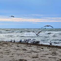 Wir waren gerade noch am Strand und haben das Meer gesehen.
