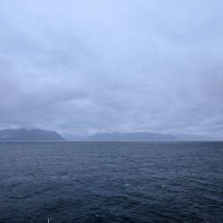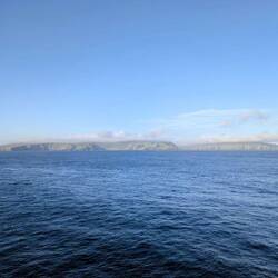 Nach ein paar Stunden sehen wir die Küste Norwegens am Horizont immer näher kommen.