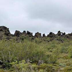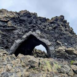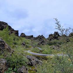 Der Name Dimmuborgir bedeutet übersetzt so viele wie dunkle Städte oder dunkle Burgen. Hier handelt es sich um ein Lavafeld und die Überreste eines Lavasees östlich des Mývatn.