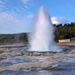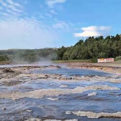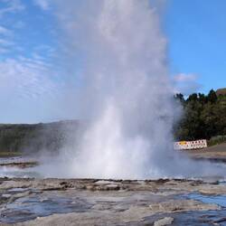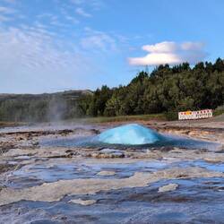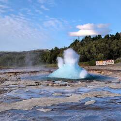 Der Strokkur befindet sich neben dem nur noch selten ausbrechenden großen Geysir im Heißwassertal Haukadalur.