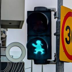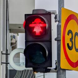 Regenbogenstraße / Gullydeckel / Fußgängerzone / Ampelfrau / Katzencafé / Graffito / div. Häuser