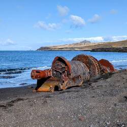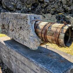 Bei der Renovierung des Hafens nach dem Ausbruch wurde das alte Seewasserrohr der Fischfabrik ausgegraben.