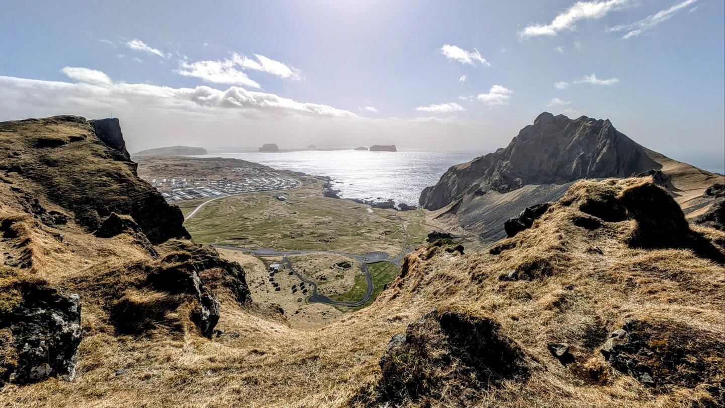 Kleine Wanderung auf den Dalfjall. Von hier aus hat man einen wunderbaren Blick über Heimaey.