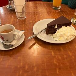 Wiener Schnitzel und Berner Würstel en na nog een stukje Sachertorte (moet toch wel als je in Wenen bent😉) met een espresso.
