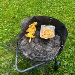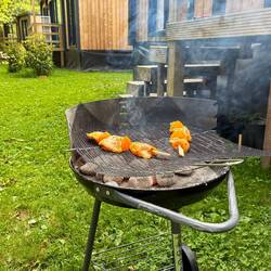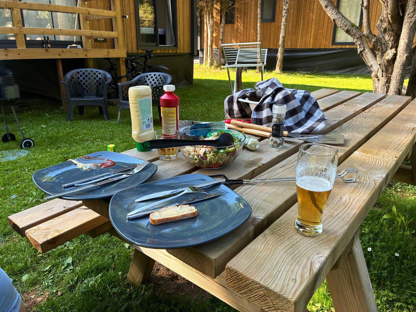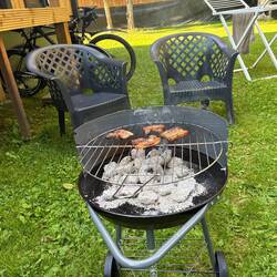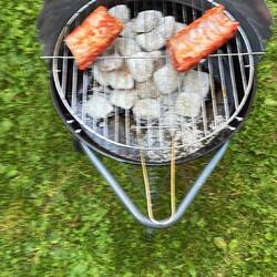 Eerst bbq met o.a. lekkere lamskoteletten, stokbrood en pastasalade.