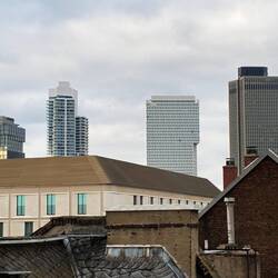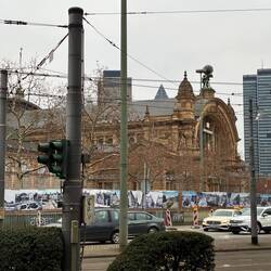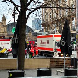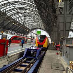 Nog een laatste blik over Frankfurt en het rode kruis dat voor de zwervers een maaltijd organiseerde. Daarna in de ICE naar Köln