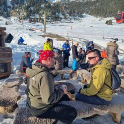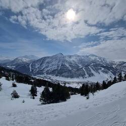 Sated, we head back up the mountain, and have a couple of great runs down the Montgenevre valley. It’s a staggeringly pretty place - lots of tree lined ski runs, deep, rocky valleys and blazing sunshine. by 14:30, a few of us are flagging. The pistes are starting to become slushy, and that’s never any fun. I am STUNNED that my knee has held up as well as it has, without any additional support. I’m not counting chickens yet, but it’s a really good sign…