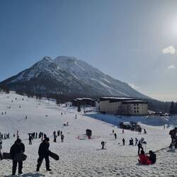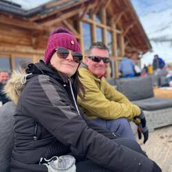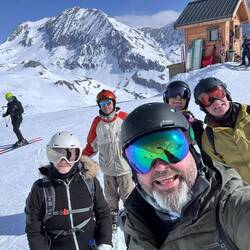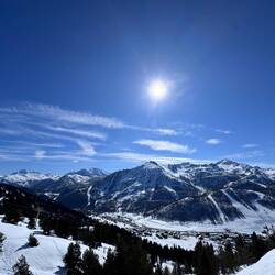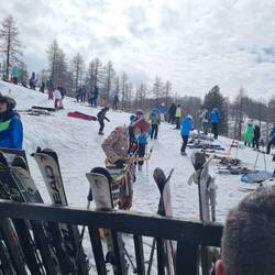 I meet the others at the end of their ski lesson, and we head up the mountain together. The conditions underfoot are good. There’s not been any fresh snow for a few days, but the pistes have been well groomed overnight. They’ll doubtless be a little slushy later, but right now, they’re in great condition. A couple of runs later, we’re ready for a break and some food, and stop at a piste-side restaurant. I’m very pleasantly surprised by the prices, which are a lot more reasonable than an equivalent venue in Courchevel or Val D’Isere. I treat myself to a plate of Tartiflette (potatoes, cheese, bacon - look it up, it’s great) and Simon and I share a carafe of red wine. I remark to the team that the slopes, restaurants, ski lifts all seem very busy today. It transpires that last week was the French schools’ half term, and this weekend has been a public holiday. It should be a LOT better tomorrow.