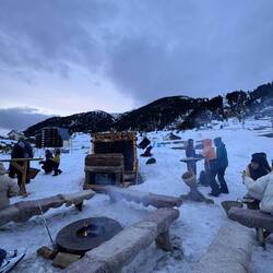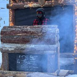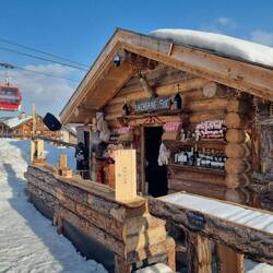 We park up at a cute little bar over the road from the main chairlifts, and spend a fab hour or two chatting shit. We could put roots down, but instead do the grown up thing, and head back to our apartments to get changed. Oh, but via a little cabin in the snow that bangs out decent vin chaud, and surprisingly also decent house music.
