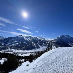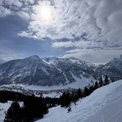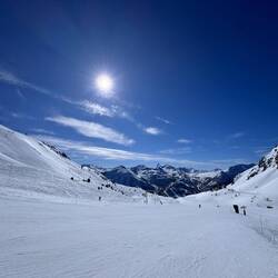 I’m back on the slopes as quickly as possible. It’s a warm day - as high as 15C on the mountain, and the snow surface is starting to cut up quite a bit. Staying high is my best bet, so I head to the very top of the mountain, and spend a sublime hour running down some fairly fast and steep runs. My knee has held up brilliantly all week, so I’m taking this one last opportunity to try and knacker it before I head home tomorrow. It stands firm.