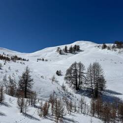 Back on the slopes, we head down towards the centre of Montgenevre. The snow here is super slushy. It’s South facing, and it’s actually pretty warm today - 13C according to the thermometers at the ski lifts. As a result, sticky, bumpy, slushy snow. Not a ton of fun. We decide to head back over the valley, and find the most beautiful run from the top of the mountain. Just perfect. Steep, but wide, and super powdery. My very favourite kind of ski run. At the bottom of it is the restaurant we lunched at yesterday, so park up.