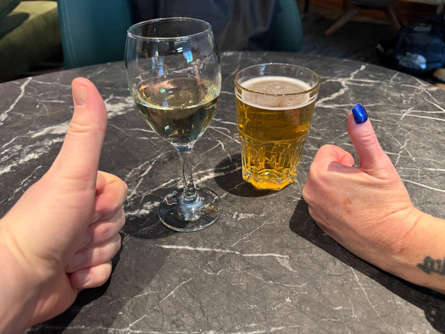 We decamp to A++, where Bobby Bobster steals first Simon’s sandal, and then my flip-flop. She’s a mischievous little scamp. We manage a drink each and a snack, before turning in for the night. Vicki and I are both hopeful of deep, restorative sleeps. HOLD TIGHT FOR FEEDBACK.Læs mere
