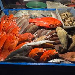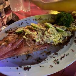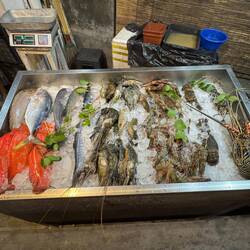 Their whole fish today is white snapper, which I immediately order. Shenda and Vicki opt for tuna steaks, and Simon orders prawns.