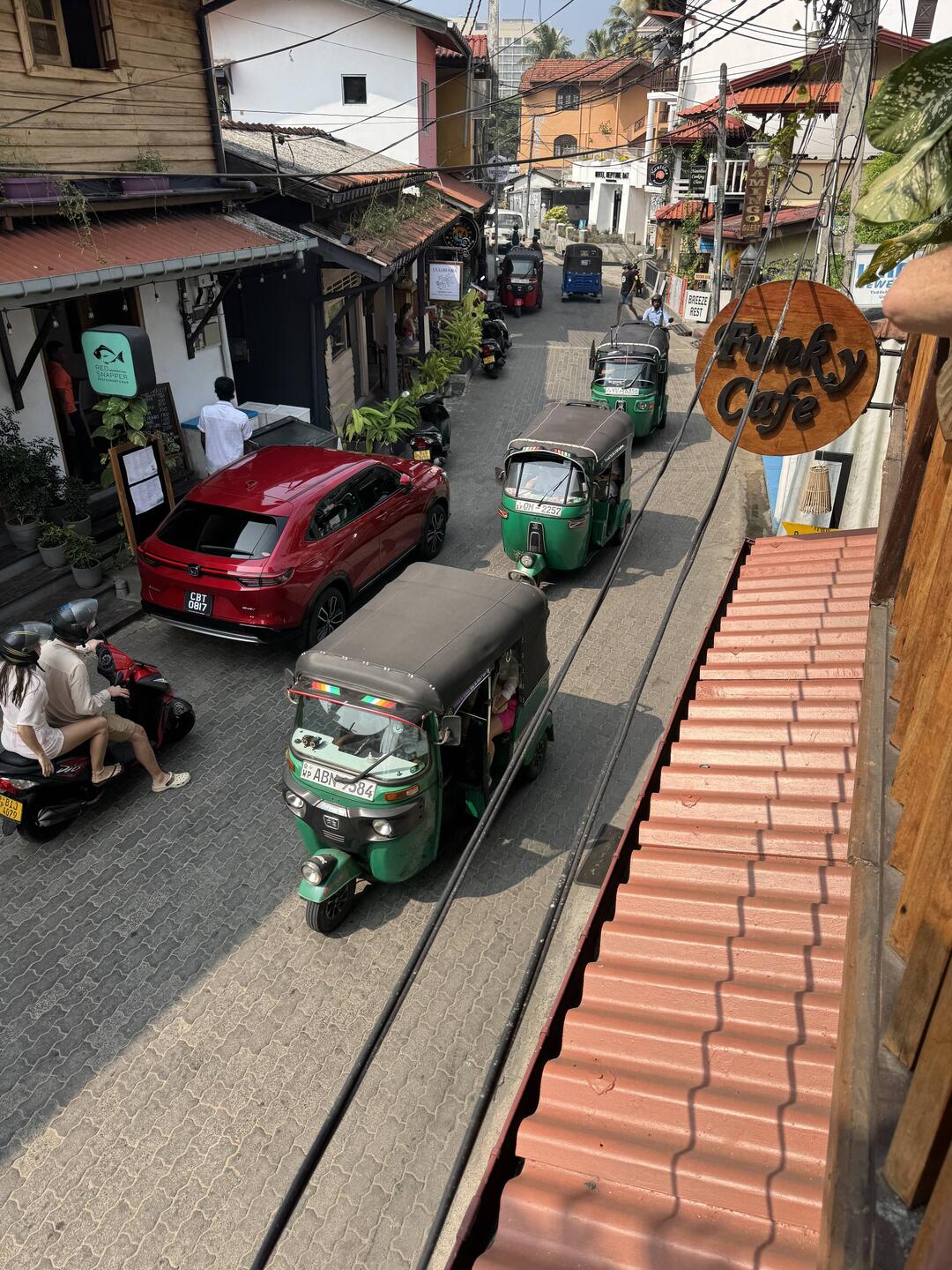 We have managed to do an awful lot of absolutely nothing today - and I believe we deserve praise for doing so. We head out for some breakfast around 10:00. We make it all of 20m from our apartment. The upstairs deck at Funky Café has a lovely breeze, some tasty sounding food options, and a sense of wellness. I have my first hoppers of the trip - those pancake type things that usually have poached eggs in the bottom. They’re delicious, and accompanied by an amazing onion sambol, and my absolute favourite - a Sri Lankan breakfast dhal. Banging. Vicki and Shenda have more than decent omelettes, and Simon has a full English that is missing most of the components of a full English. Coffee’s good though.