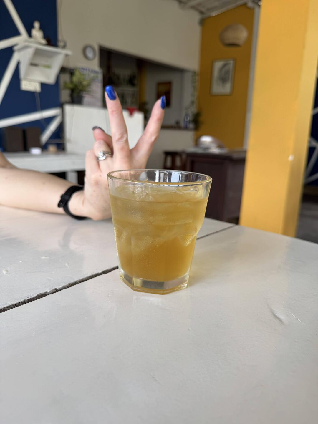 We get ourselves up, and head out for a walk, all the way down to the West end of the beach. It’s a little busier down here on the beach, and quite a lot of the shore has eroded away. We grab a drink at a beautiful little courtyard bar called The Social. I have a cucumber, pineapple and mint cooler, which is super-refreshing.