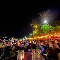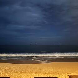 We head out around 19:00 for some dinner. There are a bunch (technical term) of seafood places along Mirissa Beach, but I’ve got my eyes on one I visited in 2024, W&D. I had probably the best prawn I’ve ever eaten, alongside some amazing bass. It’s a lovely temperature as we walk down the beach. I managed to stub my toe on a massive rock sticking out of the sand, but happily don’t come too much of a cropper.