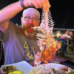 My nap is sensational. Deep, relaxing - and concluded by being abruptly woken with a start by my beloved wife. We have very little in the way of plans this evening as well. We amble over to Nautica, a restaurant on the Mirissa harbour where we boarded our whale watching trip. I had a stellar prawn curry here in 2024, and have been wanting to return. The food is good, but doesn’t quite hit the heights that my memory tells me it should be doing. Shenda reckons the prawn curry she had at Mila on Saturday was probably a bit better, and if my crab curry there is anything to go by, then I suspect she’s right. Nautica’s is still super tasty though, and very good value.