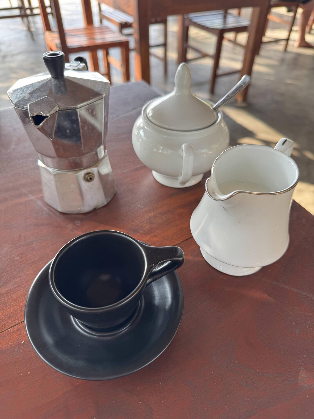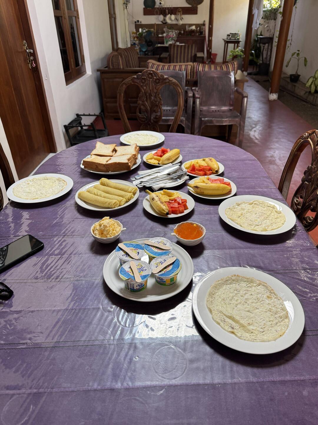 Our accommodation includes a Sri Lankan breakfast. I’ve got form with these - they can be more than sizeable things. I’ve pre-warned the others. I should point out - our accommodation is a lovely little homestay. The family house is on the same plot of land, and there are three very well apportioned rooms in a separate building to the rear of the property. Anyways, just before 10:00, the food starts to arrive. It takes about 10 minutes for it all to be delivered. We have (deep breath) an omelette, some toast, jam, sliced papaya, sliced pineapple, a widdy little banana, a yoghurt, and a coconut pancake. Oh, and some lovely Sri Lankan coffee. I manage most of mine, but forego the yoghurt. The banana is one of the sweetest I’ve ever tasted. Sensational. The coconut pancake is very tasty. It’s got what I think is some palm sugar in it, which gives it a slightly fudgy taste. Lovely.