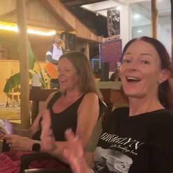 The live music is, let's be frank, not good. The band spend a good 30 minutes in sound check, constantly tweaking settings without actually changing how anything is sounding. The drummer and bassist are decent enough, but the guitarist/lead singer just doesn’t have a very good voice. Simon offers to step in on lead vocals. Apparently, his repertoire extends to some Neil Diamond and some Robbie Williams.