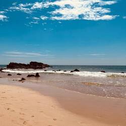 Vicks and Shend head off to do some ultra important shopping, so Simon and I spend 30 minutes getting swept off our feet by the surf. We’re wave break adjacent. The waves are powerful, and the currents they create enough to knock us over. Top fun.