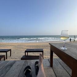 Vicks and I head out to Tangalle town in search of supplies. It’s walkable - maybe 45-50 minutes, but that scorcher I mentioned earlier is definitely with us today, and we err on the side of caution, jumping in a tuk-tuk. We grab some supplies, stock up with cash, and head back to the beach. We’ve only been out an hour, but it’s been quite a draining and hot experience. It’s starting to cool now, and the deck seating of Shehani’s bar is now in the shade. I settle in with a glass of wine to watch the world go by. It’s just about the coolest fucking place I can imagine being right now. In front of me is an expanse of ocean, with literally nothing but water between me and Antarctica, some 6,000 miles due South of us. One glass accidentally becomes two - and I feel like I could quite happily settle in here for the duration.
