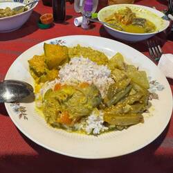 We’ve been keen to try Mrs Chandi’s non-breakfast food, so pad back down to our regular haunt. I’ve a feeling her rice and curry is going to be a thing of great, great beauty. Simon, Shenda and I all order the rice and curry - mine with the addition of a fish curry for the princely sum of 50p. Vicki is after a wodge of protein, so orders the grilled fish.