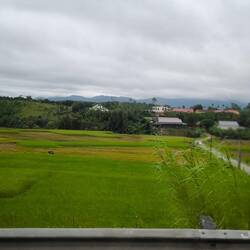 Es regnet 🌧️ ohne Unterlass, ziemlich große Pfützen auf den Straßen und ab und an ein Rückstau als wir die Stadt 🏙️ verlassen. Erst hinter Hanoi beruhigt sich das Wetter im Großen und Ganzen und damit auch der Verkehr... und wir, die im Limousinen-Van auf wirklich komfortablen Sesseln sitzen, genießen die vorbei ziehende Landschaft.