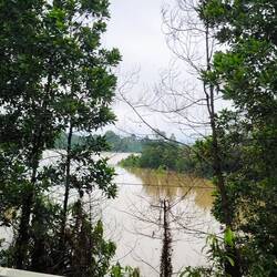 Während der Weiterfahrt 🚌 starten wir wiederholt unsere Suche 🔍 nach einem Hotel 🏨, das uns gefällt und nicht im Wasser steht.
