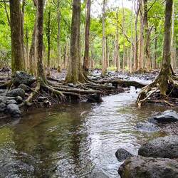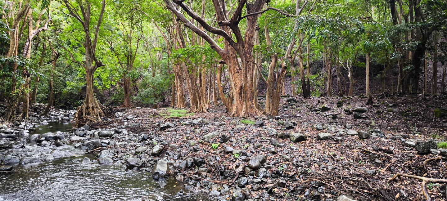 Heute gehen wir von unserem Zuhause aus Richtung "Middlesex University Mauritius" (ja sie heißt so, siehe letztes Foto 📷), dort durch einen kleinen Park 🌴mit einem schmalen Bach in der Mitte.