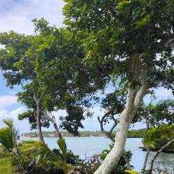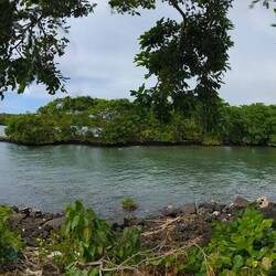 Er liegt in einer Lagune und ist von Mangroven umgeben.