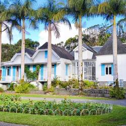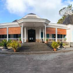 Die "Domaine des Aubineaux" ist ein Kolonialhaus, umgeben von einem Park, genutzt als Museum und Veranstaltungsort für Feierlichkeiten.